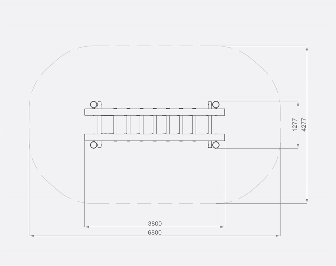 Представляет собой мостик-балансир, состоит из опорных стоек, перекладин и цепных подвесов. Подвесы соединяют деревянные перекладины-ступеньки с брусьями и обеспечивают прочное и качественное крепление.