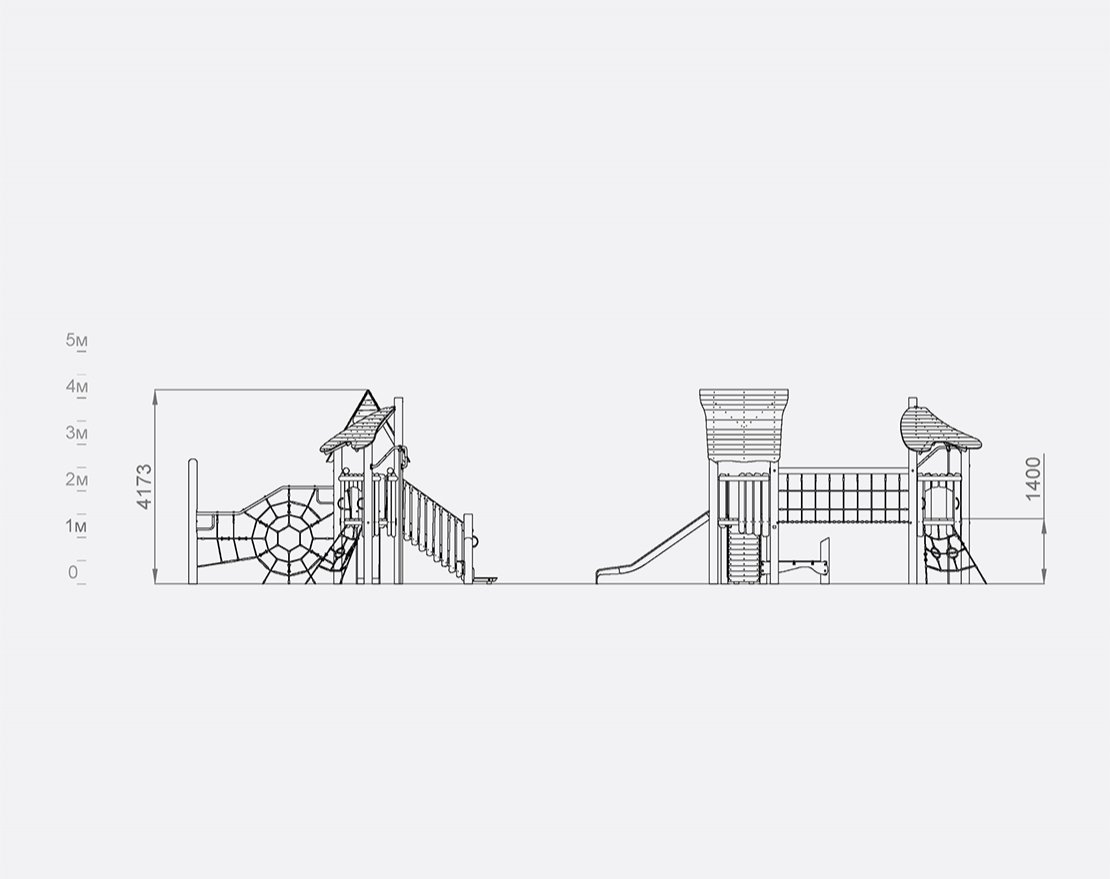 Состоит из опорных стоек, канатной сетки, мостика и металлической горки с защитными бортиками. Для большего комфорта, сетка оснащена пластиковыми ручками и уступами.