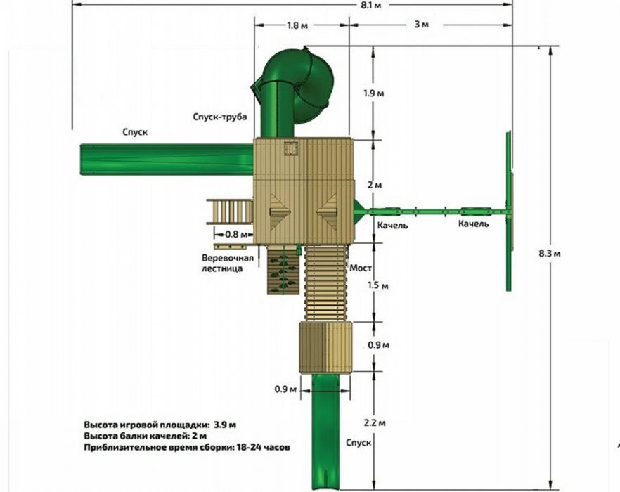 Эверест 3 — огромная многофункциональная игровая площадка с большим двухуровневым фортом под деревянной крышей, мостиком и малым фортом под матерчатой крышей для детей дошкольного и младшего школьного возраста. Игровая площадка прослужит долгие годы даже в условиях самой интенсивной эксплуатации. Элементы комплекса изготовлены из пропитанной защитными составами древесины сосны, гальванизированной стали, морозостойкого пластика. Площадка Эверест 3 сделает интересным и полезным времяпровождение всех малышей: младшие смогут поиграть в песочнице или покачаться на качелях, а более взрослые с удовольствием оценят горки различной длины и конструкции и скалодром. А отдохнуть от активных игр или организовать небольшой пикник дети смогут на удобных скамейках за деревянными столиками.