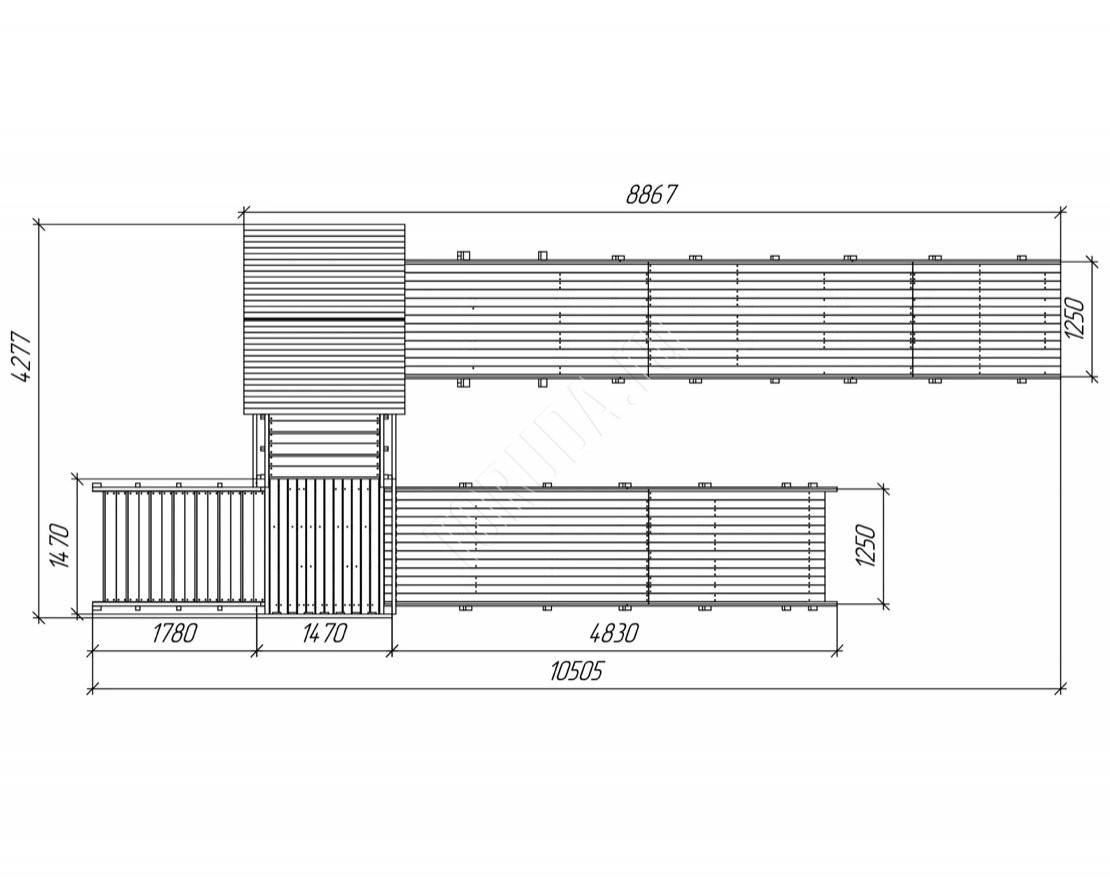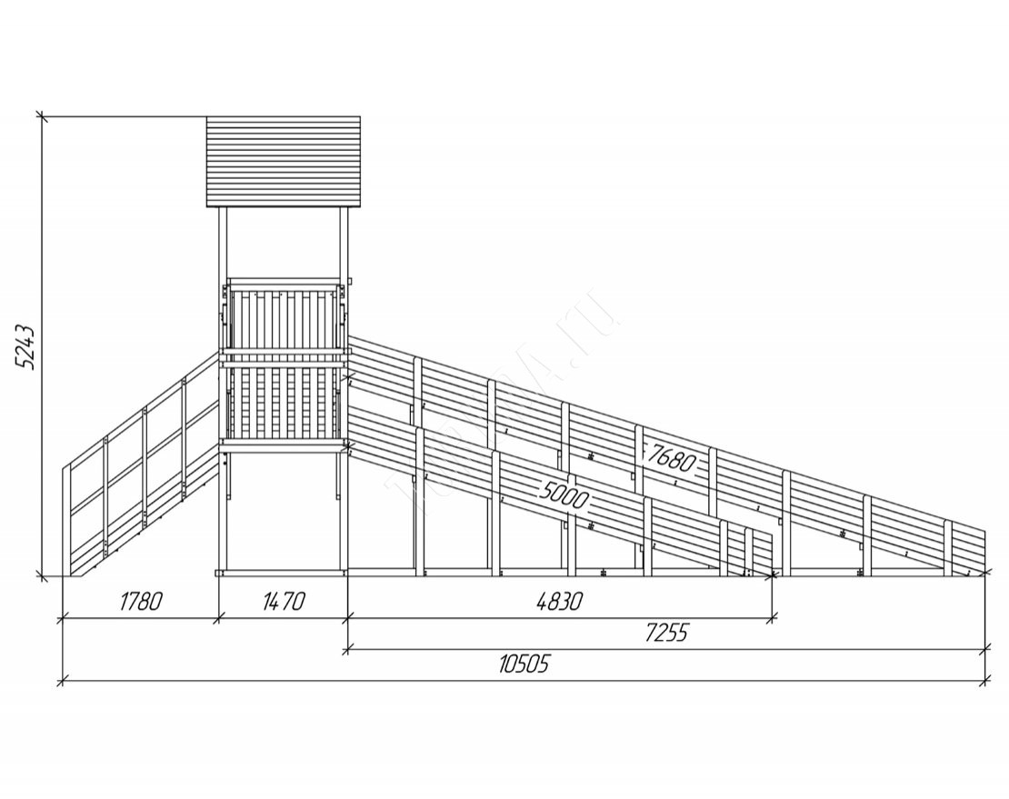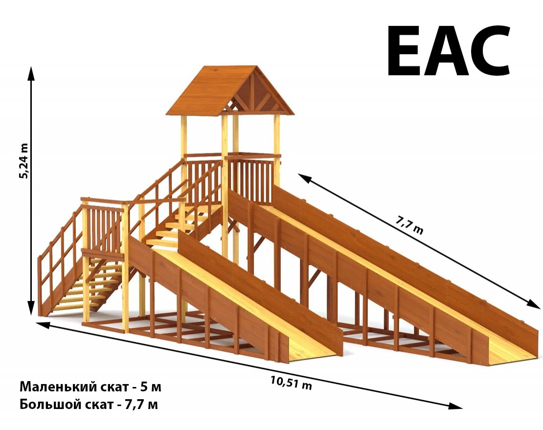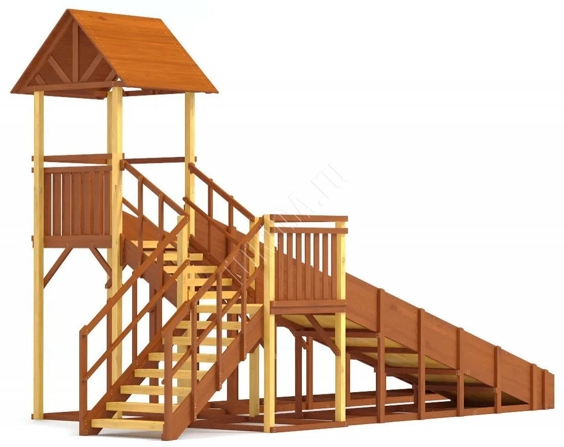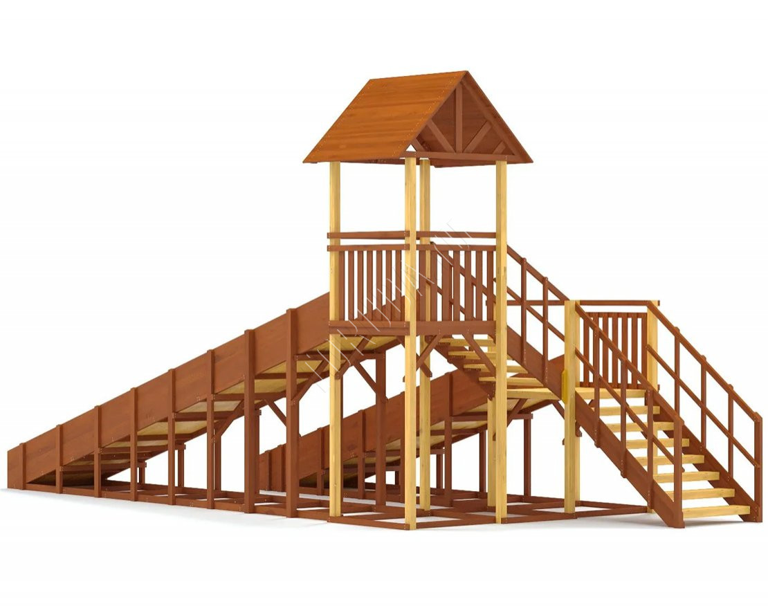 Конструкция тщательно спроектирована и выполнена из качественных материалов, что гарантирует безопасность и долгий срок службы. Каркас изготовлен из надежного клееного бруса, а в качестве защитного покрытия использован лакокрасочный состав с разрешающим сертификатом для применения на детских площадках.