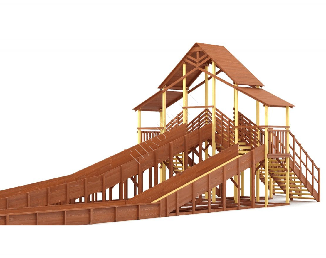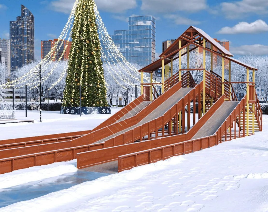 Три мощных ската длиной до 30 метров, которые превращают любую площадку в центр зимнего веселья! Прочная двухуровневая конструкция, широкие лестницы и высокие ограждения делают катание максимально безопасным.