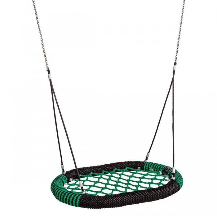 Сидение качелей от европейского производителя «КВТ», антивандальное, армированный канат защищен от воздействия УФ излучения (не выгорает), влагостойкий и морозостойкий, диапазон эксплуатации от - 60°С до +60°С.