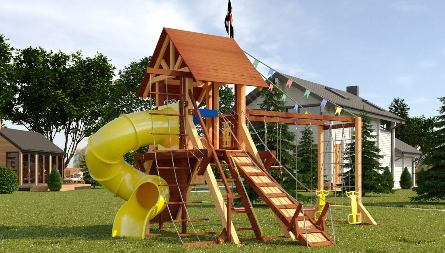 Площадка Галиот 12 обладает довольно широким функционалом (который по желанию можно легко расширить). А на качелях могут кататься даже родители! Детская площадка предназначена для дачи, коттеджа.