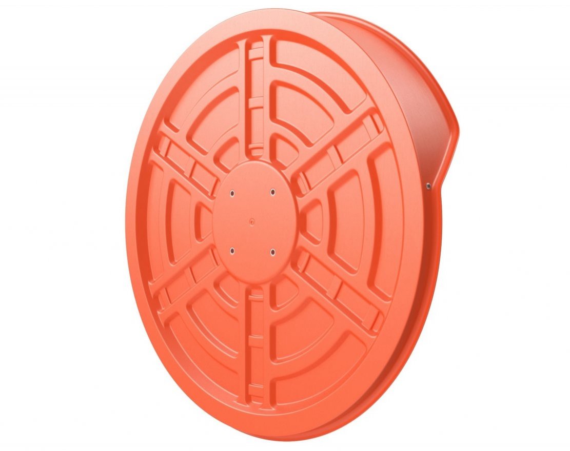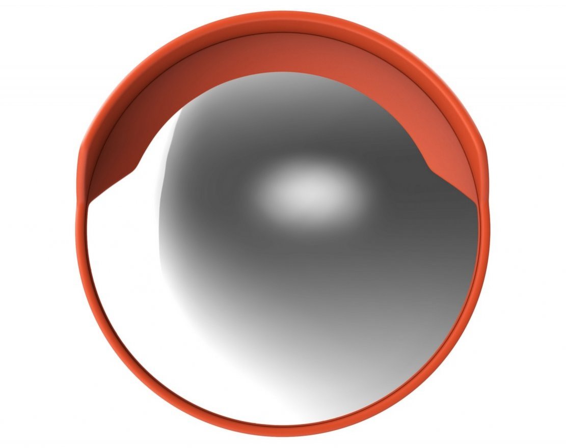 Основа зеркала выполнена из ABS пластика оранжевого цвета. В верхней части предусмотрен козырек для защиты от солнца и осадков. Зеркальная часть выполнена из поликарбоната.