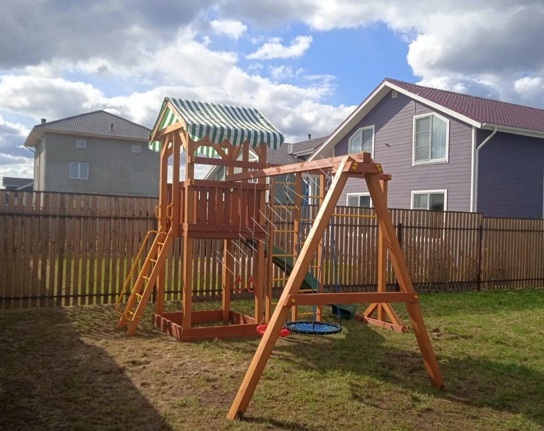 Площадка Парус 2 обладает довольно широким функционалом (который по желанию можно легко расширить). Детская площадка предназначена для дачи, коттеджа.