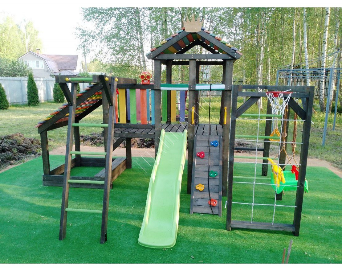 Детская площадка обладает довольно широким функционалом, предназначена для дачи, коттеджа.