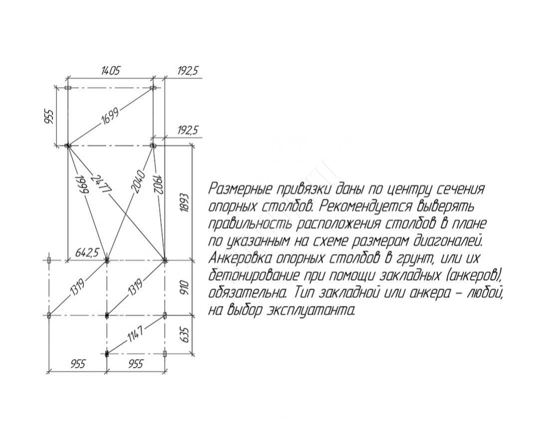 Для установки данной площадки рекомендуется закрепить её анкерами (8 шт). Анкера в комплект не входят, приобретаются дополнительно.
