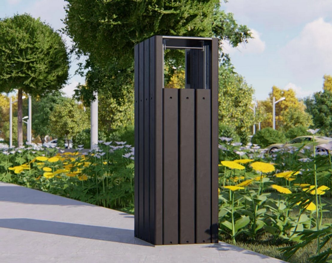 Практичная уличная урна с защитой в виде навеса сверху от попадания осадков — залог чистоты городского ландшафта. Является элементом уличного декора и хорошо вписывается в ландшафт сада или парка.