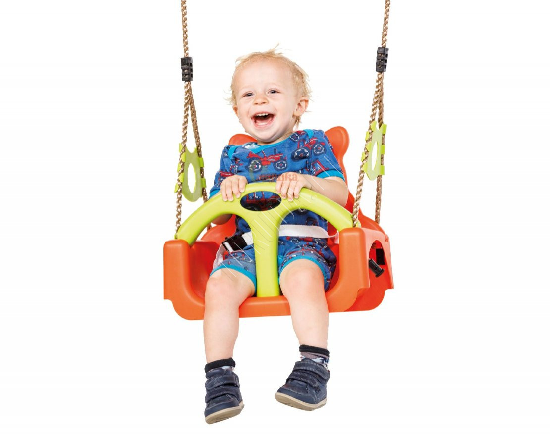 Качели состоят из трёх частей, в комплект входит ремень безопасности.