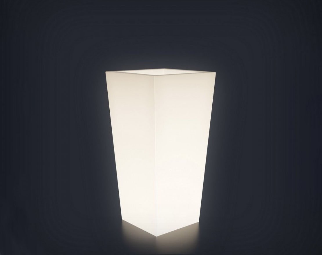 Кашпо-конус Quadrum с подсветкой – это декоративное изделие для высадки цветов и растений, оснащенное светодиодным элементом в нижней части корпуса. Землю можно засыпать прямо внутрь. Корпус спокойно выдерживает нагрузки от давления грунта и корней растений. В нем можно выращивать даже небольшие деревья.
